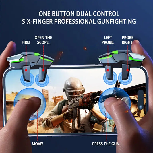 ANIRUN A Pair Of Mobile Game Triggers, Game Controllers, Gamepads, Six-finger Game Buttons, Sensitive Operation, Joystick Aiming And Shooting L1 R1 Alloy Key Buttons For IPhone/ Android