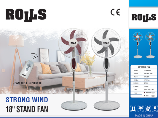 ROLLS USSF-606ER stand Fan 18" very powerful 55w with remote control