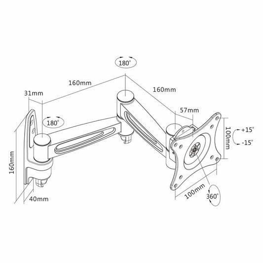 INLINE 23105D WALL BRACKET FOR TFT UPTO68CM/27″ TWO PIECE ARM 15KG
