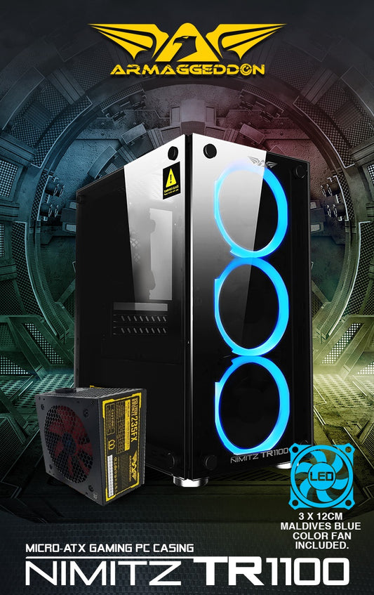 Armaggeddon Nimitz TR-1100 Micro ATX Case with PSU & 5x Blue Fans