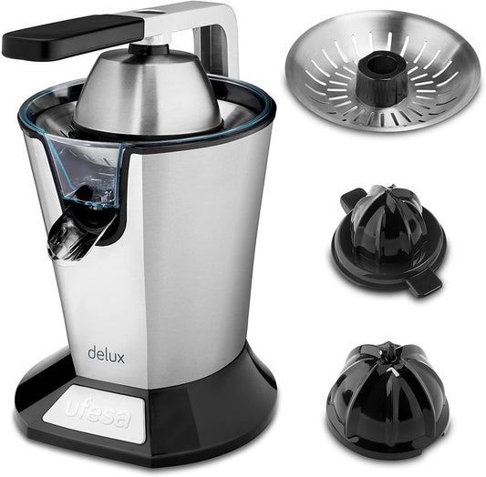 UFESA EX4950 Lever Press Juicer 600W Inox Different squeezer cones for Large & Small fruits