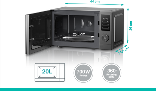 Gorenje Kitchen Microwave Oven 700W 20L 8 Programs Digital Screen MO20A3T4 Titanium