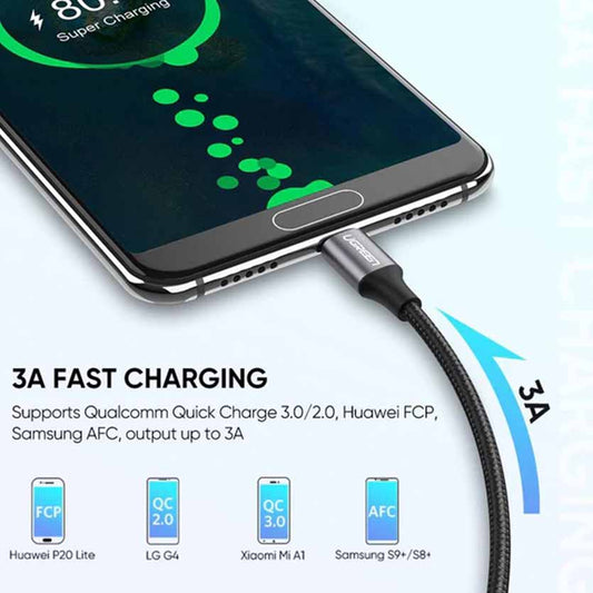 UGREEN 60126 TYPE C 1m BLACK CHARGING CABLE 3A