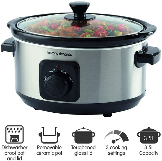 Morphy Richards 460017 Brushed Stainless Steel 3.5L Ceramic Slow Cooker