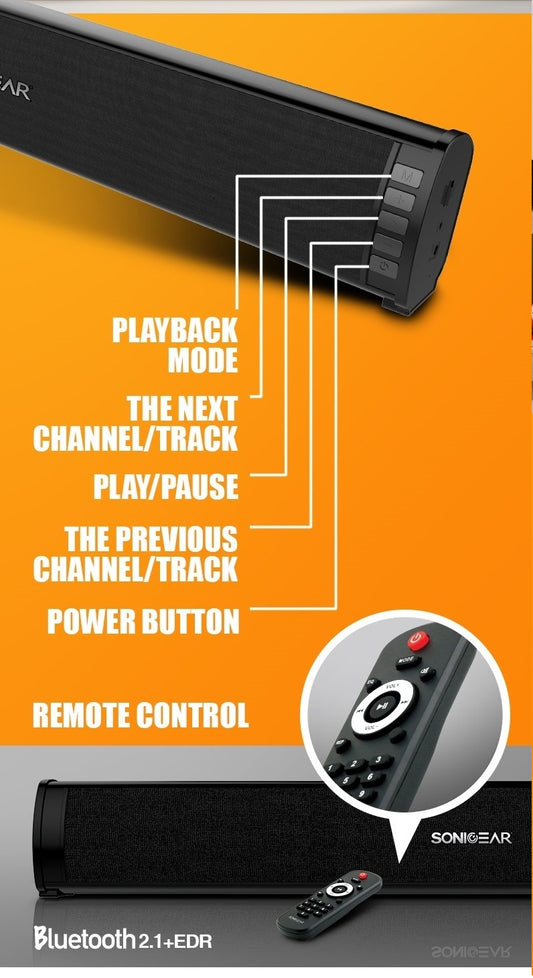 SonicGear BT-2100 Bluetooth Soundbar with SubwooferRegular price €80,00 EURRegular priceUnit price per-