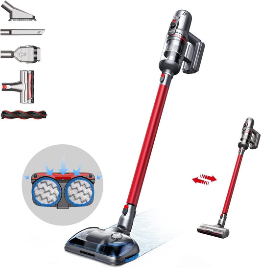 PUPPYOO T12 Pro Rinse , 2 in 1 HandStick Vacuum Cleaner with Mopping Head, Red
