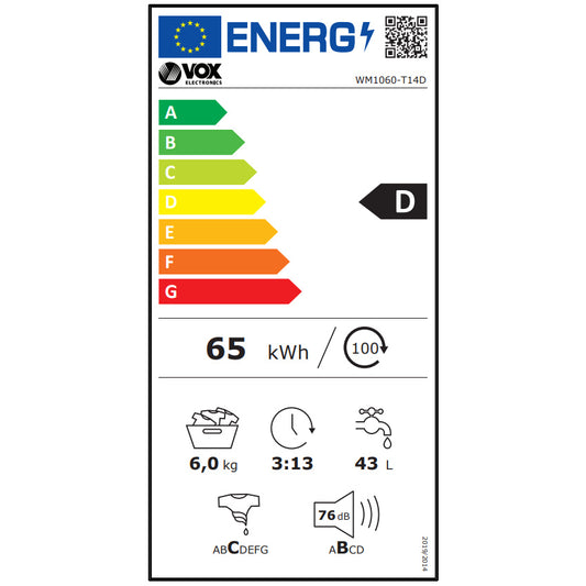 VOX WASHING MACHINE, 6KG, D, 1000 RPM, 76 DB, QUICK WASH, 15 PROGRAMS, WHITE