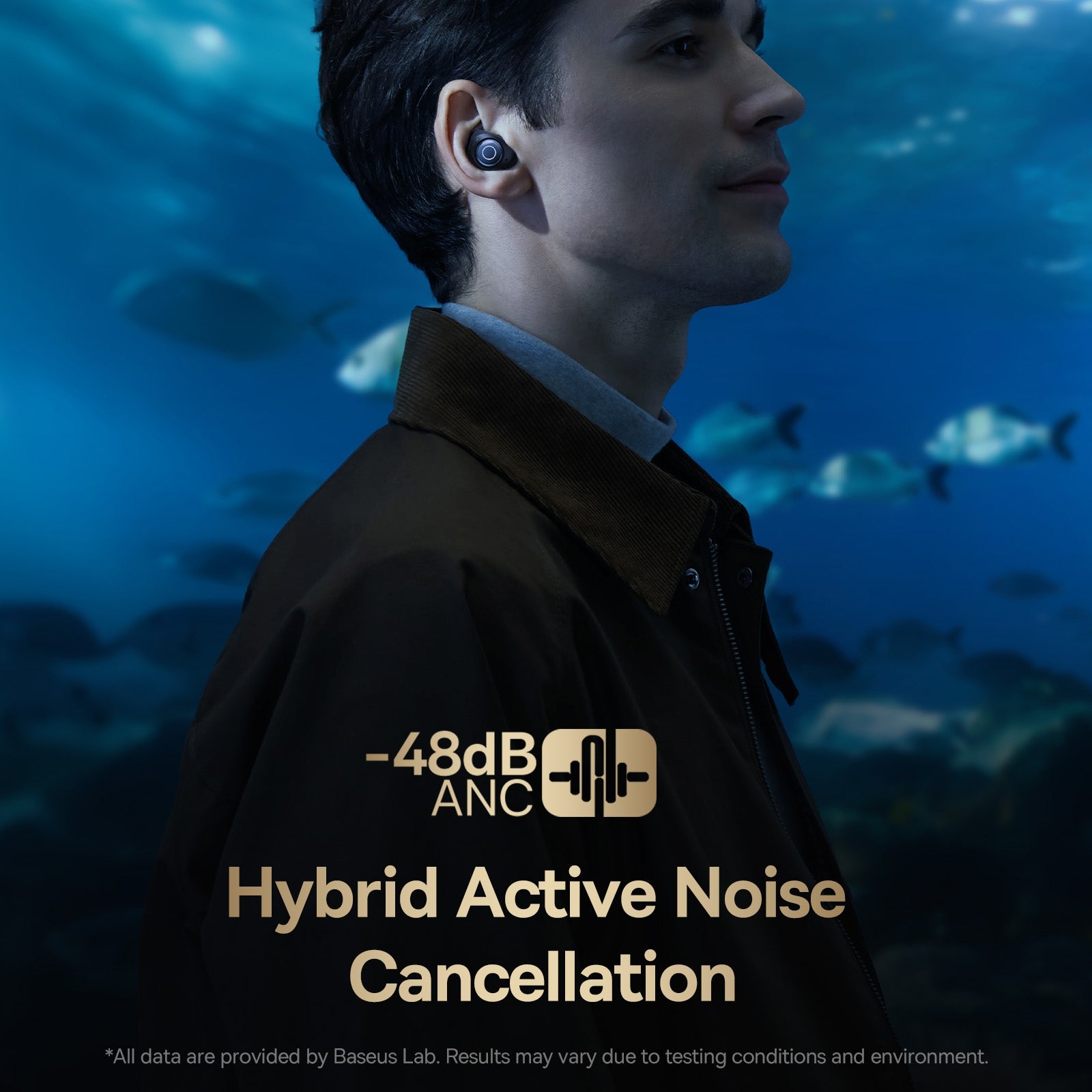 - Lose yourself in music without annoying noise with Baseus Bowie MA20. These earbuds feature large drivers that deliver rich, detailed sound. The ANC function reduces ambient noise by up to -48 dB, allowing you to focus on what matters. Moreover, they can run for up to 38 hours with the charging case and support wireless charging. With 4 microphones that filter out external noise, you can be sure your conversation partner will hear you clearly. Discover what more you can gain!