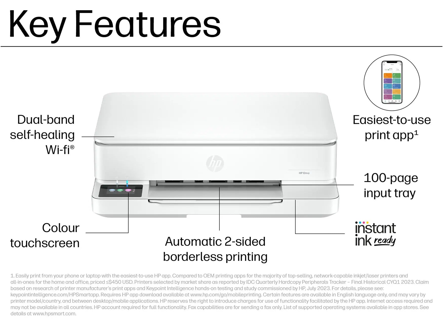 HP Envy 6120e All-in-One HP+ enabled Wireless Colour Printer with HP+ and 3 months Instant Ink