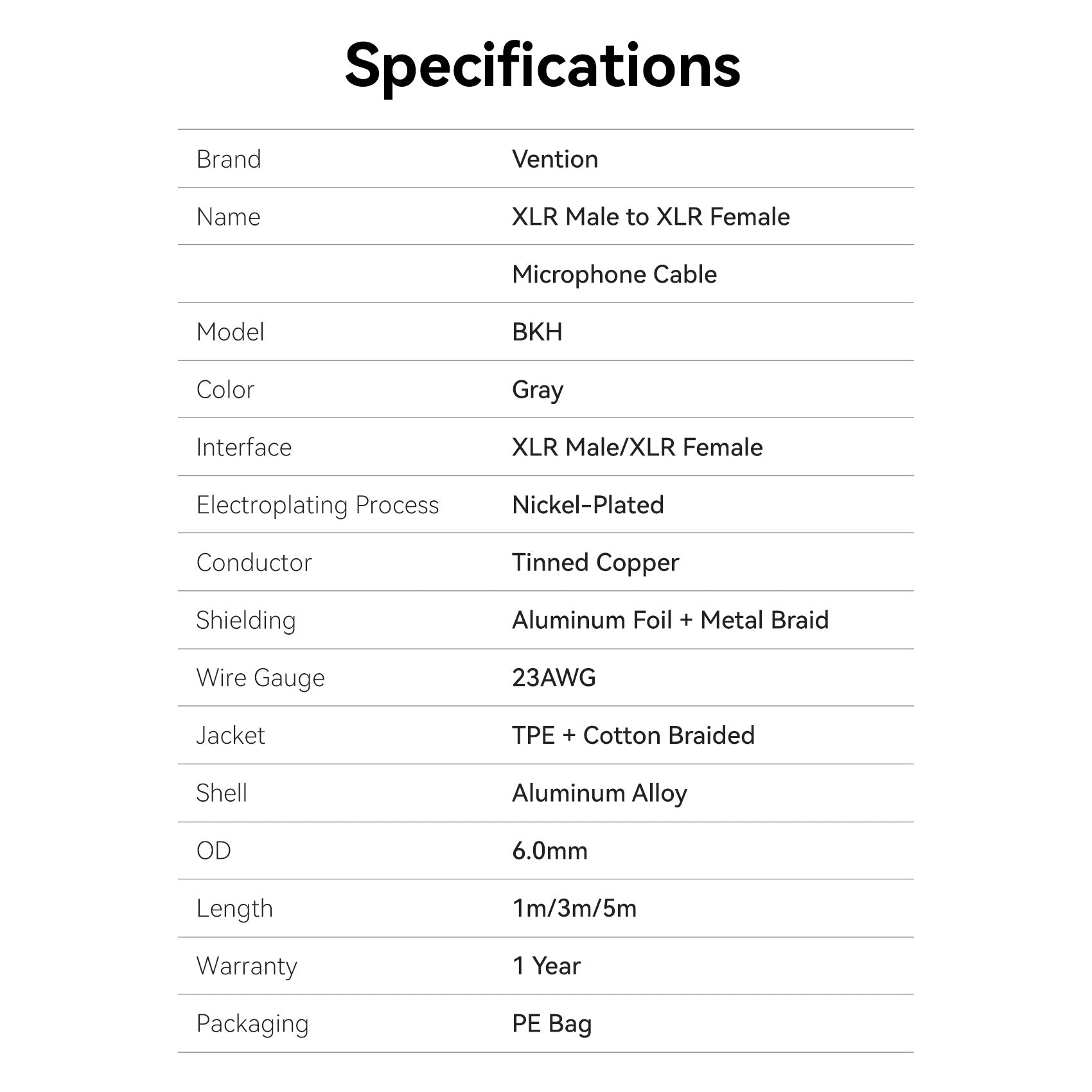 Vention AUDIO XLR M-F Cable Braided-Metal 5.0m BKHHJ