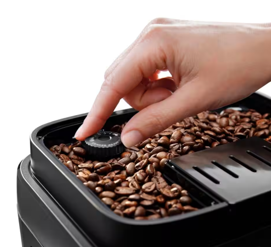 The machine's technology grinds the exact amount of beans, leaving no coffee residue in the unit, ensuring your next cup is just as fresh