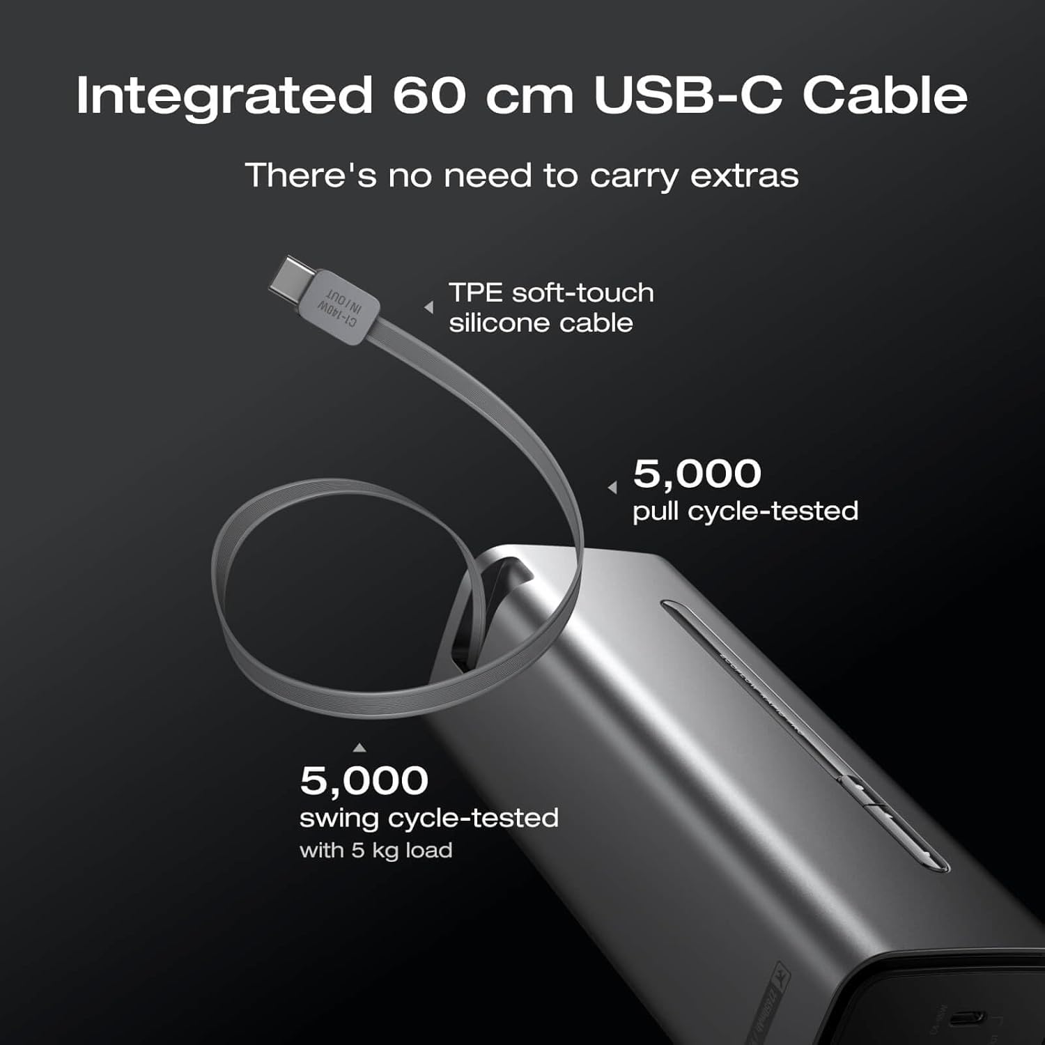 - Premium, Compact Design: RAPID Pro offers big power in a compact size that fits easily into backpack side pockets. Air-travel-friendly 27,650mAh, 99.54Wh capacity,* extend your device's runtime to keep your remote work and free time powered. With an integrated 60 cm cable, there's no need to carry extras. * Airline regulations vary by region and carrier. Please confirm battery restrictions with your airline before travel.