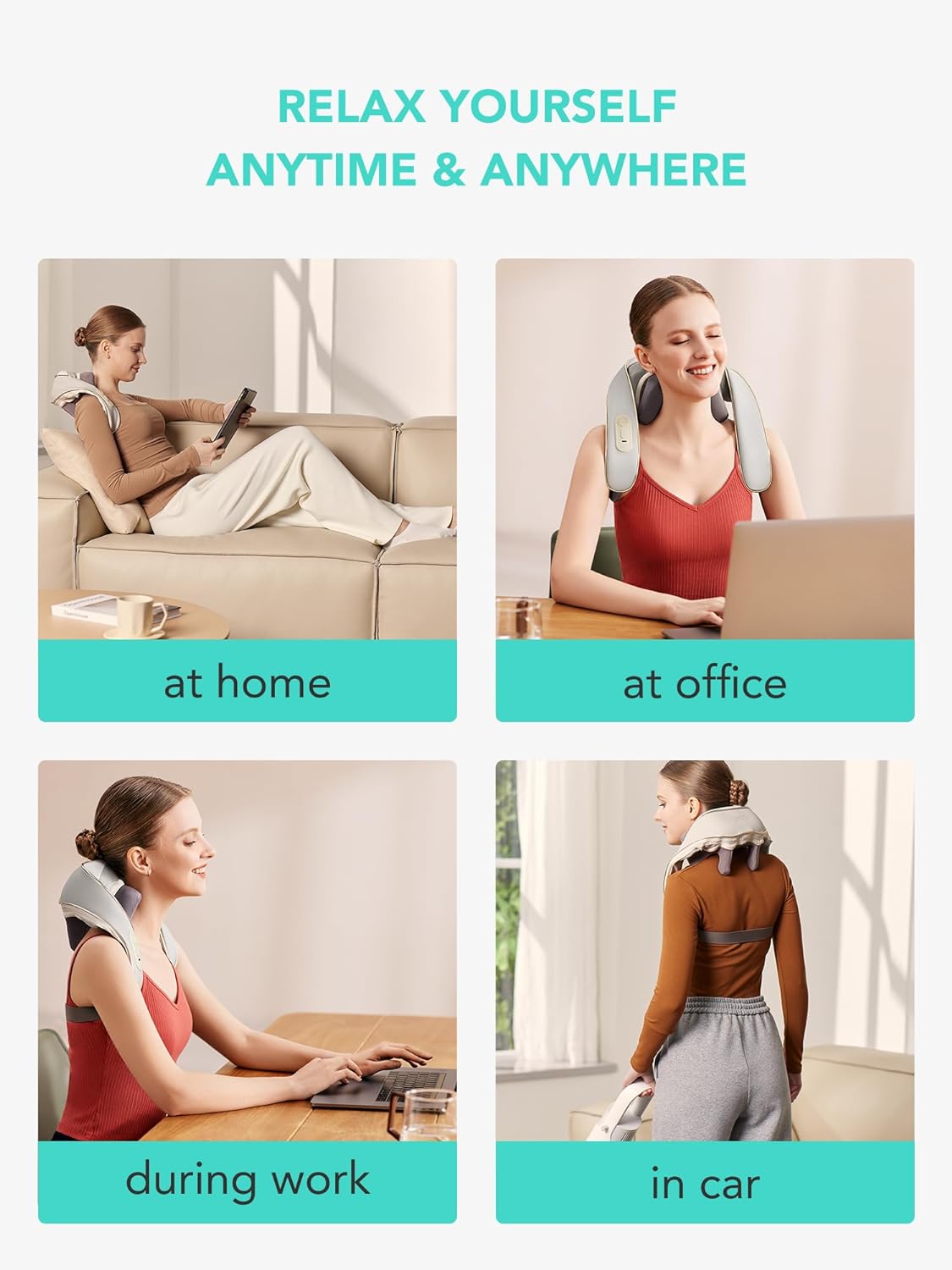 𝗙𝗶𝗿𝗲 𝗬𝗼𝘂𝗿 𝗠𝗮𝘀𝘀𝗲𝘂𝘀𝗲 𝗖𝗼𝗺𝗽𝗹𝗲𝘁𝗲𝗹𝘆 - SKG H5 deep tissue kneading neck massager with heat simulates human hand massage. Its cordless and lightweight design allows you to enjoy the massage anytime and anywhere, completely replacing the need for a masseuse.
