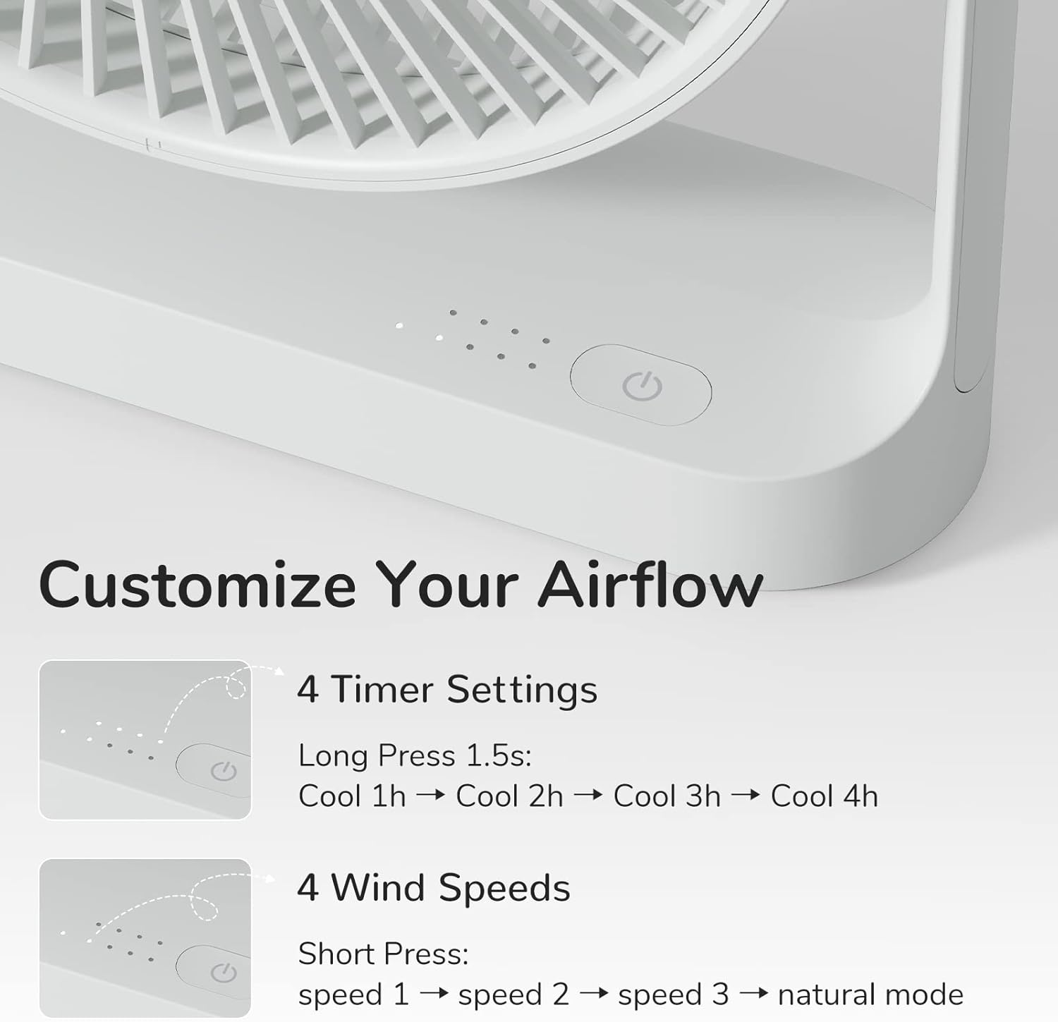 - Customize Your Comfort By One Button (a)Four wind speeds, short press to speed 1 →speed 2→speed 3 →natural mode; (b)Four shutdown timer settings, long press 1.5s to Cool 1h → Cool 2h →Cool 3h→Cool 4h.