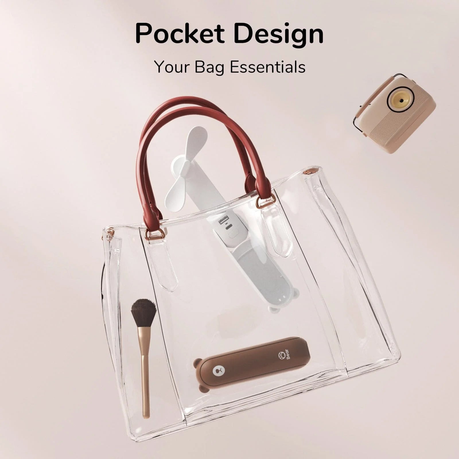 Foldable Design and Mini Size: This rechargeable fan can hide the fan blade, small and easy to slide into your pocket and purse.