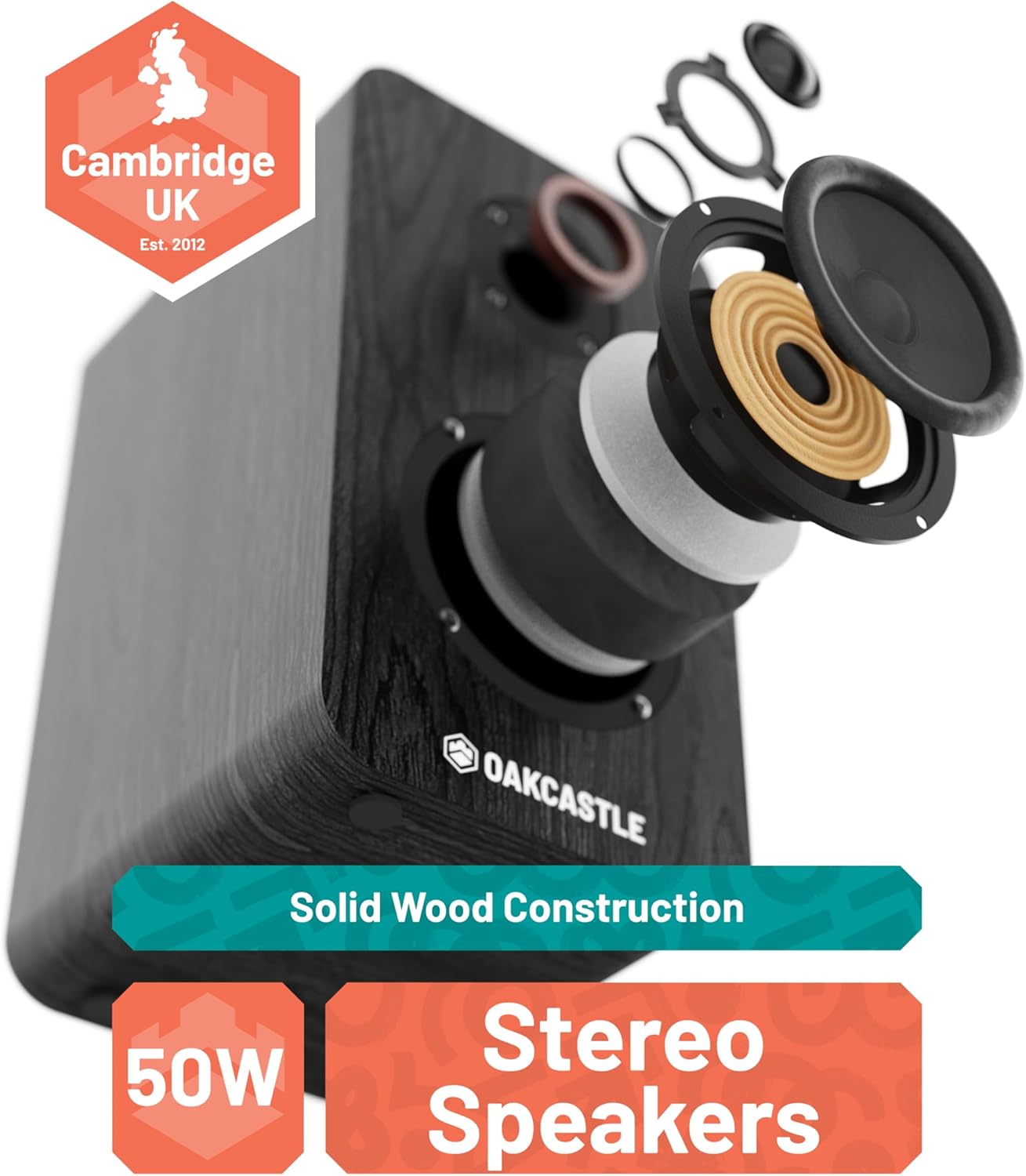 Majority Turntable TT200 Belt Drive & 2x External 50W Speakers (Oakcastle)