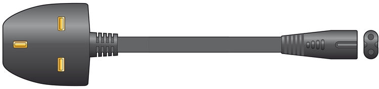 UK 3 pin plug to figure 8 female plug, 2 core mains power lead, suitable for connecting power to general electronic equipment up to 575W.