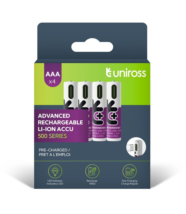 - Uniross USB-C Rechargeable AAA Battery (Pack of 4) is designed for those who demand reliable, consistent power