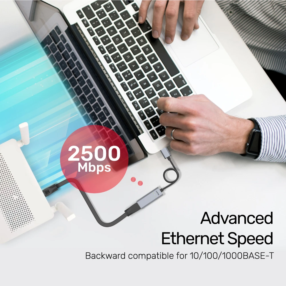- Convert USB-A to 2.5 Gigabit Ethernet (RJ45).