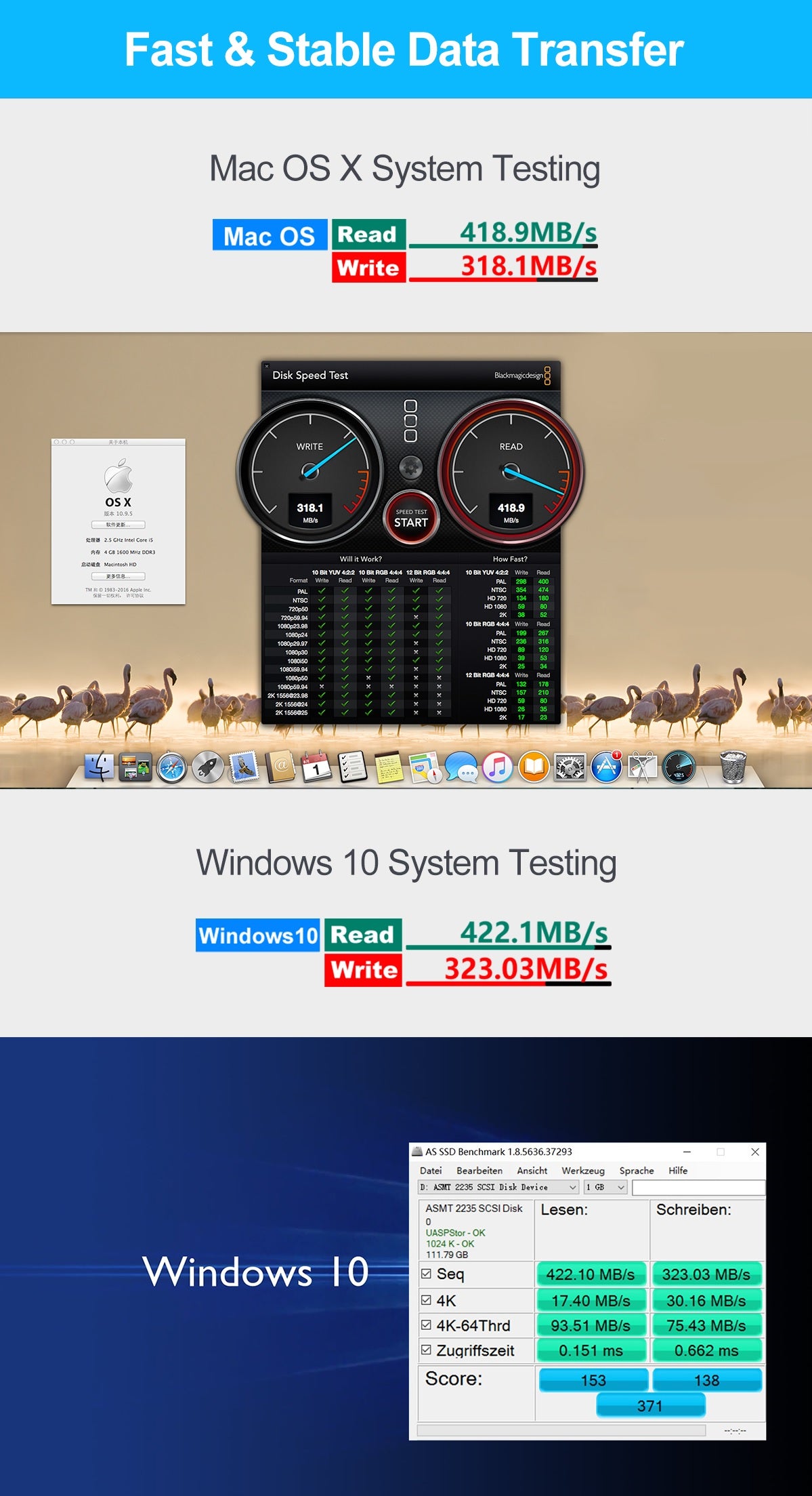 - Support UASP and TRIM, maximise the data transfer speed and lifespan of SSD.