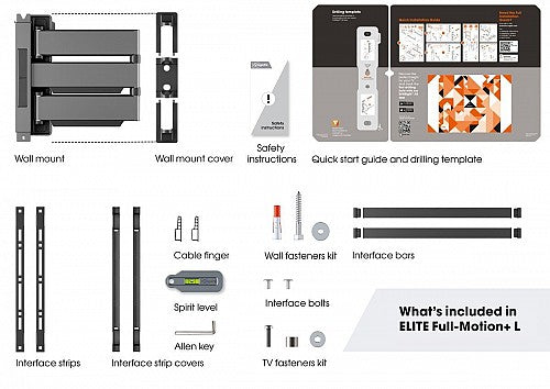 The ELITE Full-Motion+ TV wall mount combines minimalistic design with great performance. The wall mount is not only ultra-slim, but also ultra-strong and can be turned up to 180°. In short, the ultimate wall mount for large high-end TVs, such as OLED and QLED TVs. The TV wall mount is suitable for displays from 40 to 77 inches in size and weighing up to 45 kg. In the starting position, your TV is mounted just 4 cm from the wall.